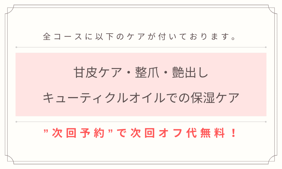 上記すべてを兼ね備えた、ここだけのジェルネイルをご提供いたします。