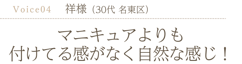 初めてのジェルネイルでしたが、マニキュアよりも付けてる感がなく自然な感じでした。