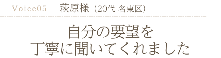 自分の要望を丁寧にきいてくださったので、遠慮なく自分の要望を伝えることができました。