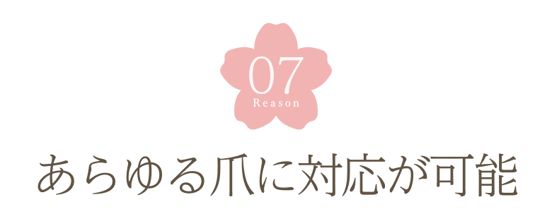 その経験を活かし、噛み爪・むしり爪・深爪・小さい爪・凸凹爪・貝爪・加齢爪など、さまざまな爪のお悩みに応じた『オーダーメイド施術』を行っています。
